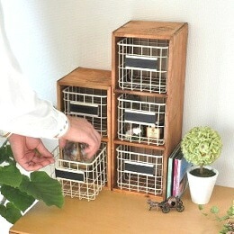 ●【 インテリア雑貨 】カントリーウッドの ワイヤー2段チェスト